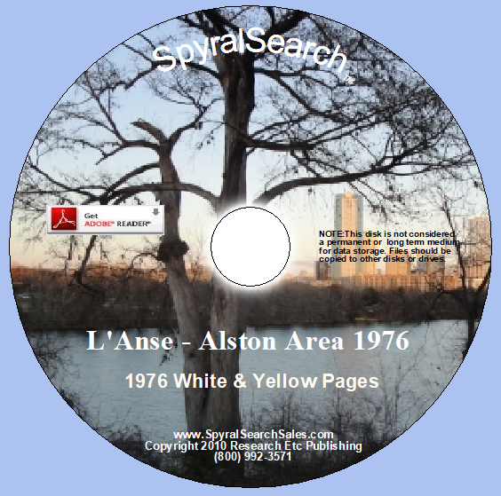 Fully text-searchable, the - L'Anse - Alston Area 1976 White & Yellow Pages has 68 scanned pages of the White Residential/Business Pages and the Yellow Pages, with listings for the following communities: